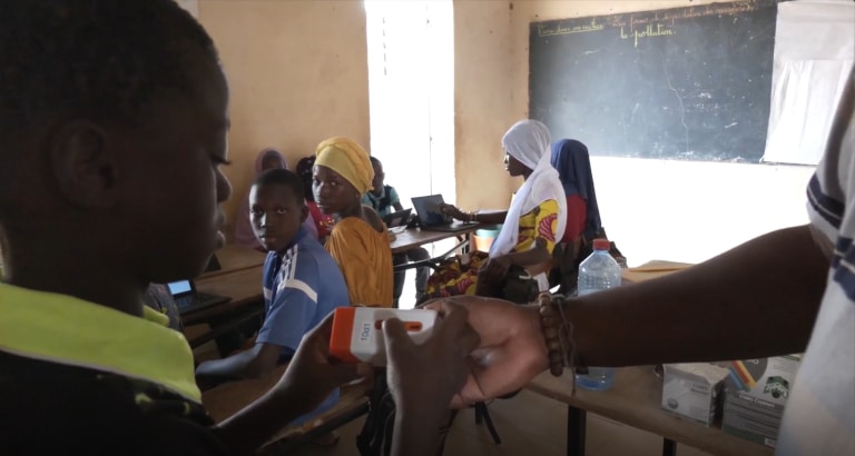 Together with the Senegalese Ministry of Education, BSF has installed a Digital Learning Hub in 70 primary schools across the Kédougou region. Each of these hubs is equipped with an Ideas Cube digital library, which operates without an internet connection, and provides access, via tablets and computers, to thousands of educational resources. Adapted to national curricula and available in national languages, this content includes videos, courses, interactive exercises, and educational games.