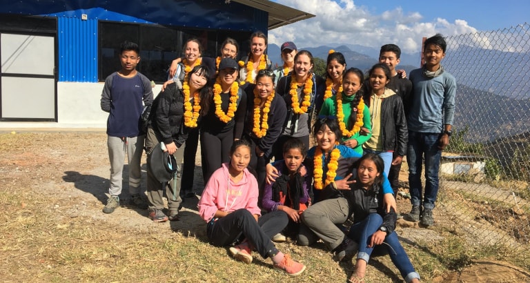 Photo de groupe devant la bibliothèque de Batase au Népal